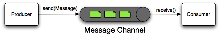 A Message Channel represents the "pipe" of a pipes-and-filters architecture. Producers send Messages to a channel, and consumers receive Messages from a channel. The Message Channel therefore decouples the messaging components, and also provides a convenient point for interception and monitoring of Messages.