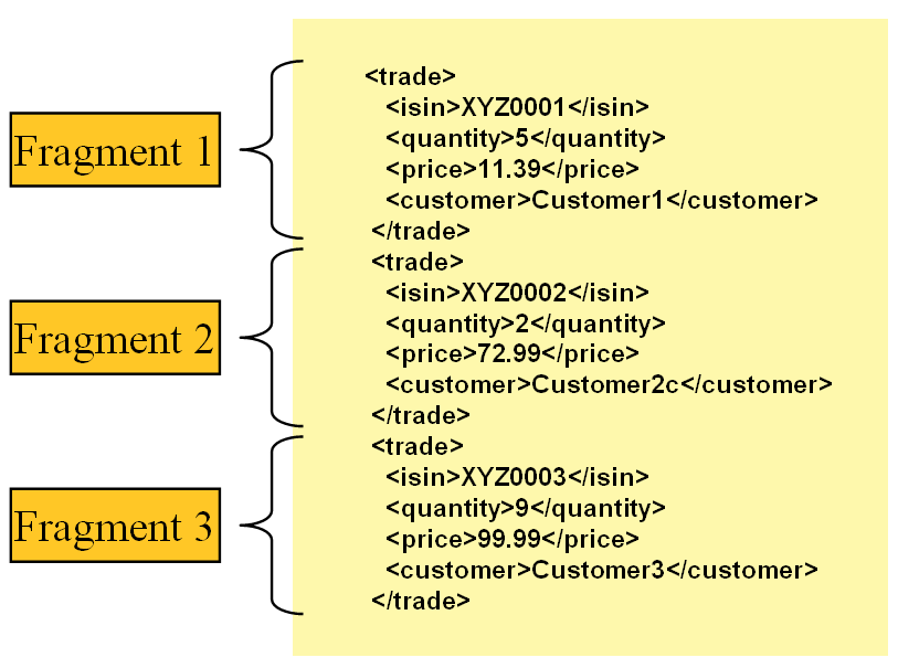 XML - XML ItemReaders process XML independently of technologies used for parsing, mapping and validating objects. Input data allows for the validation of and XML file against an XSD schema.