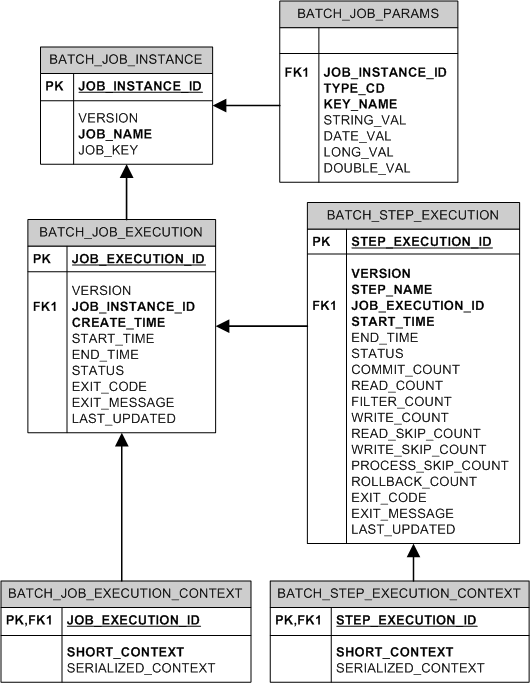 BATCH_JOB_EXECUTION_CONTEXT and BATCH_STEP_EXECUTION_CONTEXT. The