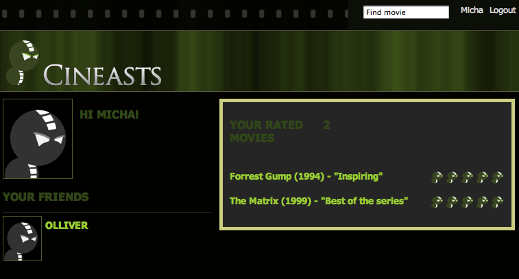 After that a logged in user was available in the session and could so be used for all the social interactions. Most of the work done next was adding controller methods
