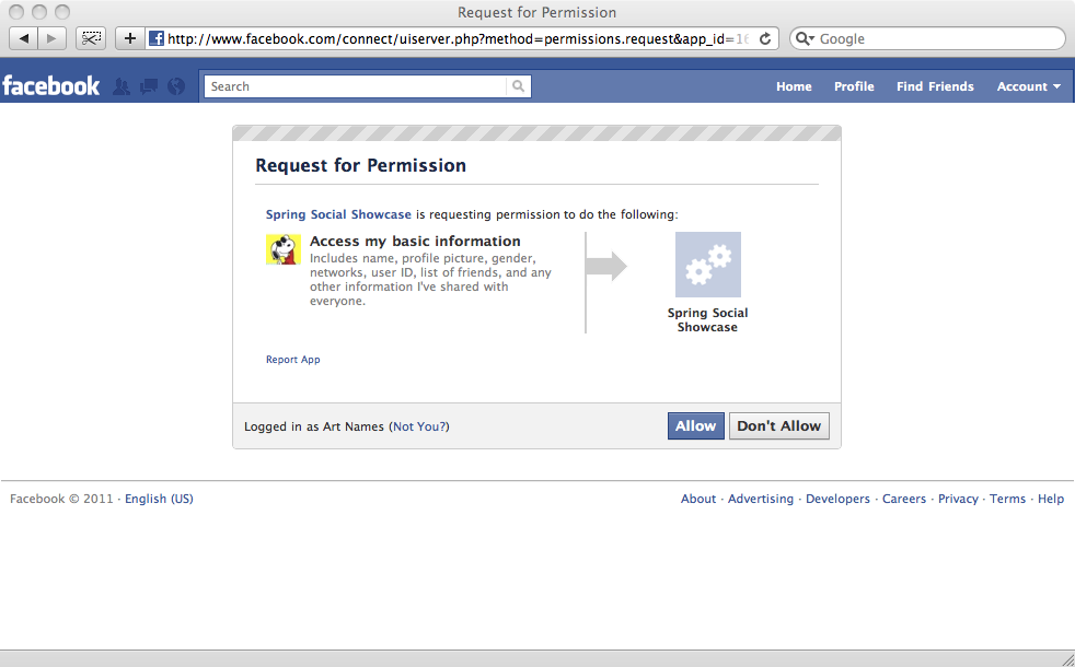 In addition, there are a handful of provider-specific modules that extend Spring Social to enable integration with popular SaaS providers, including Facebook and Twitter.